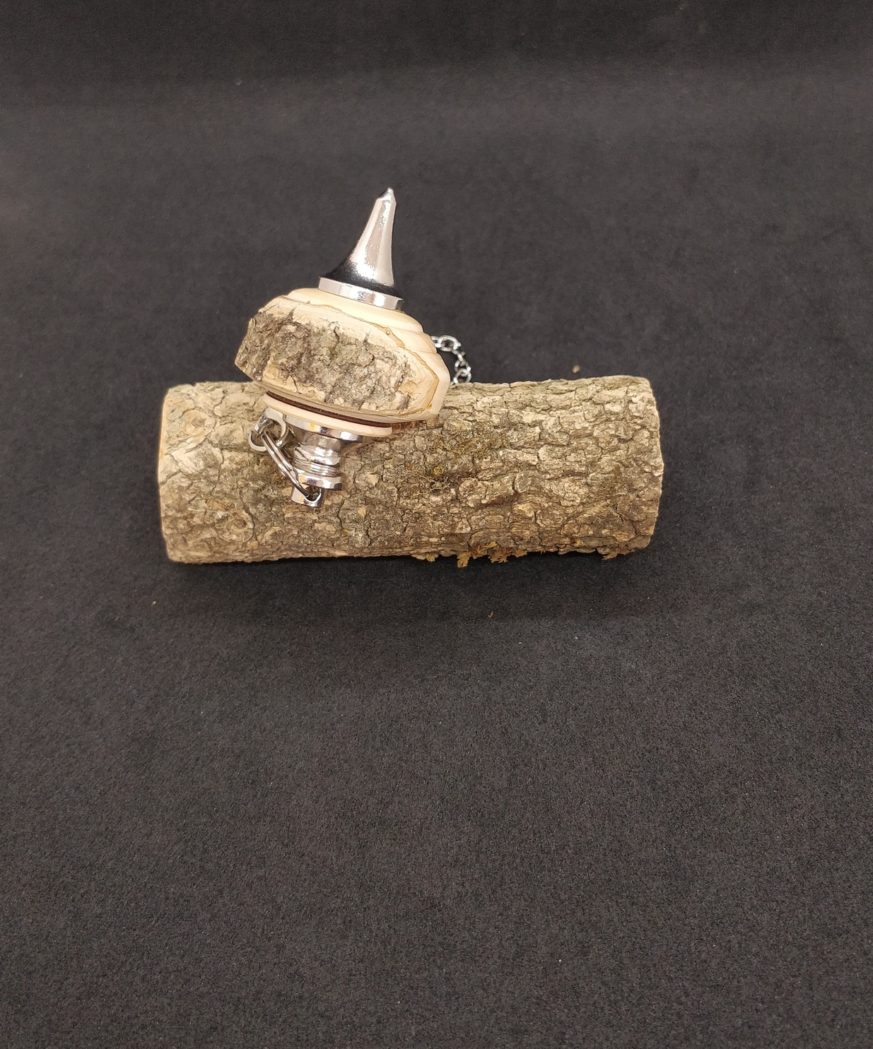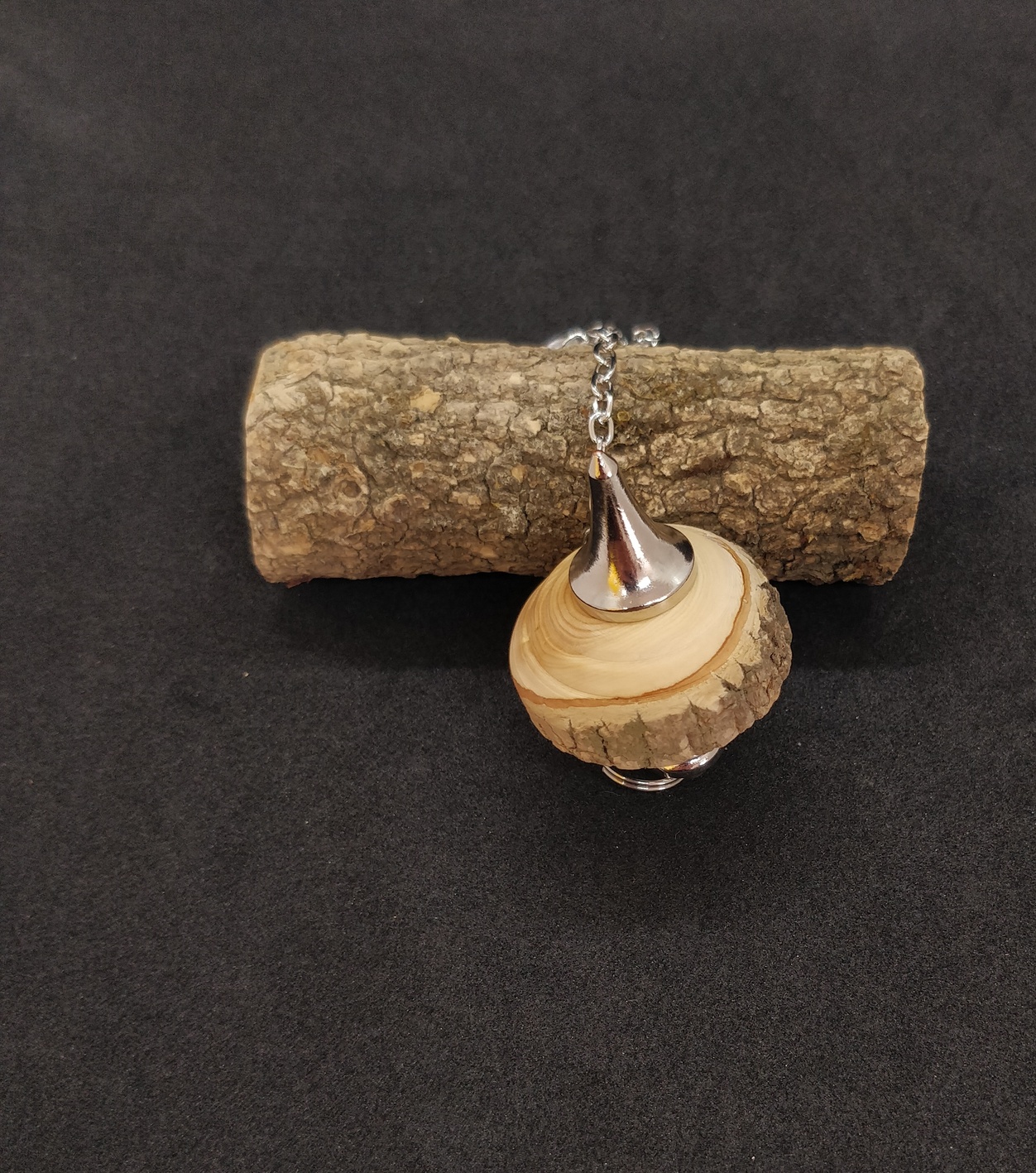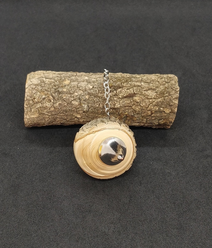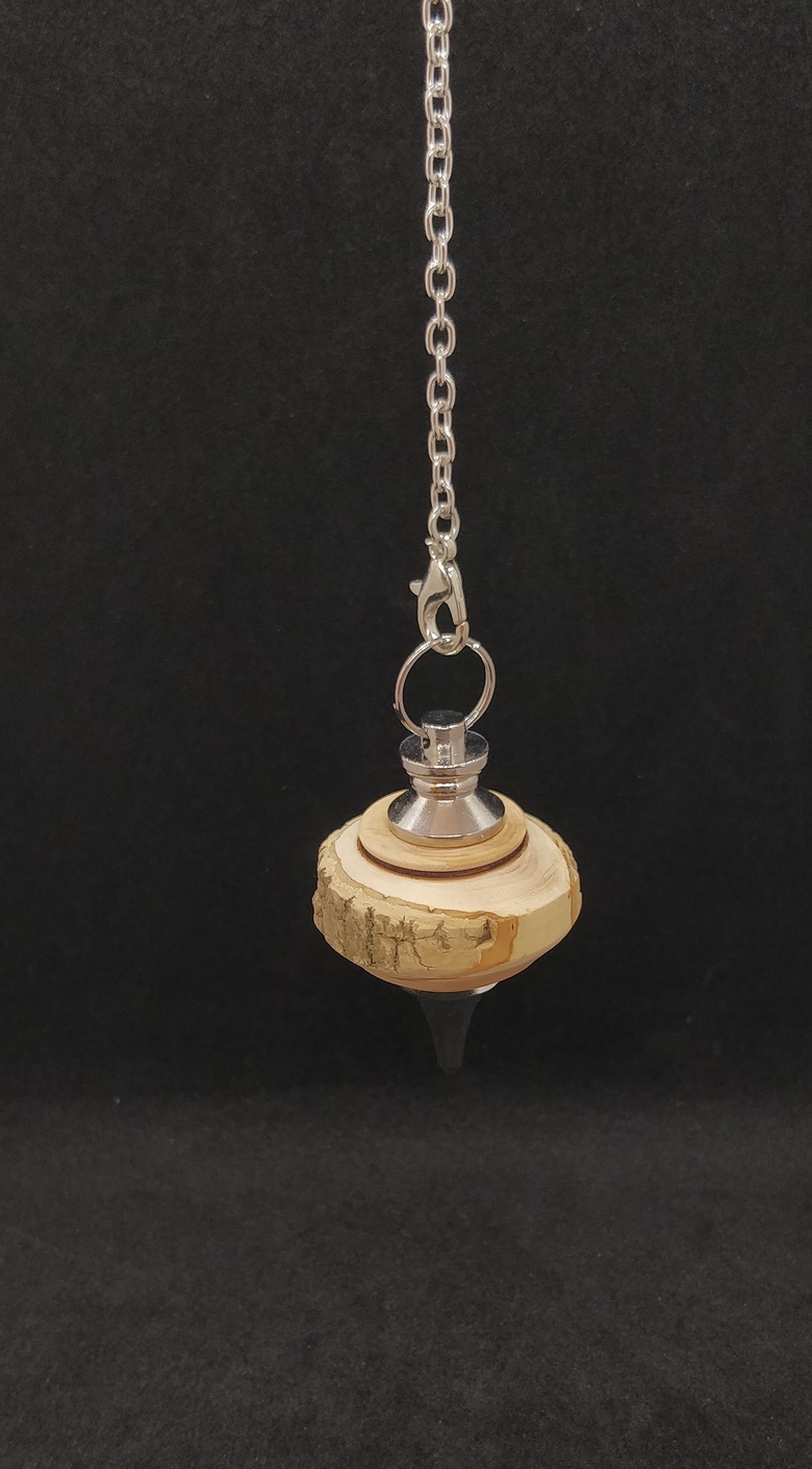 Pendule artisanal de radiesthésie en Buis et son écorce. Forme circulaire totalement imparfaite en fait toute son originalité et pour autant très réactif et équilibré. Rare personnage que ce pendule de caractère !