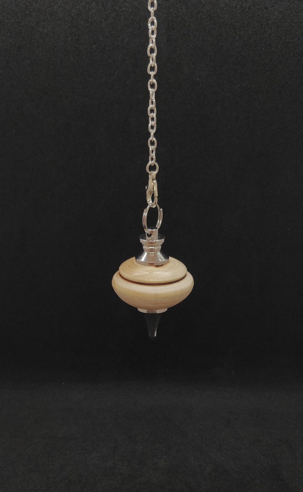 Pendule artisanal de radiesthésie en bois d’Olivier de Charente Maritime Sobre avec l’empreinte de son écorce… bois clair.
