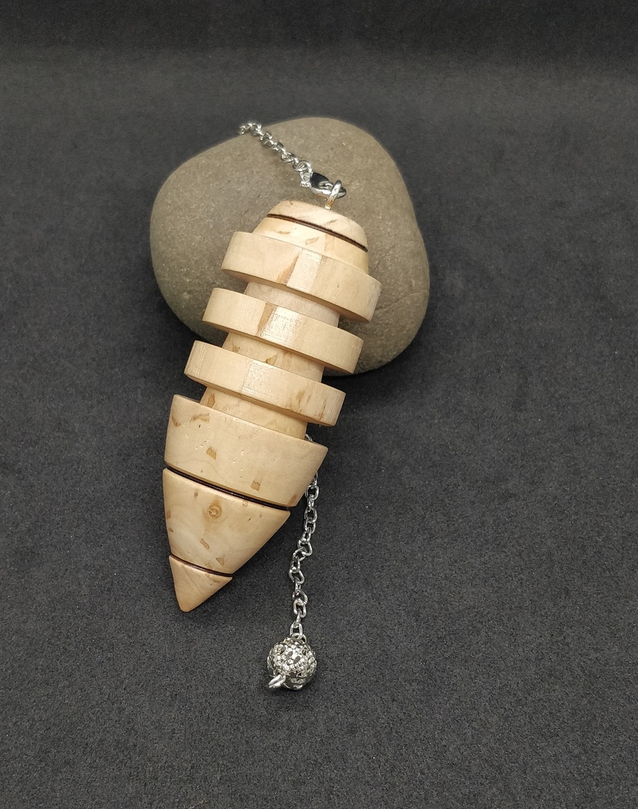 Pendule artisanal de radiesthésie en Aubépine en langage des fleurs,elle symbolise la pureté, l’innocence et la Renaissance. Les arbustes d’aubépine marquent souvent l’entrée vers les mondes magiques et sont souvent choisis par les fées pour se réunir… L’essence de ce pendule provient de Sablanceaux  en Charente Maritime. Il vous fera probablement penser au pendule Osiris et vous invite à travailler en géobiologie.Monter le taux vibratoire d’un lieu pour éliminer les ondes nocives. Il est détecteur efficace des ondes négatives en tous lieux
