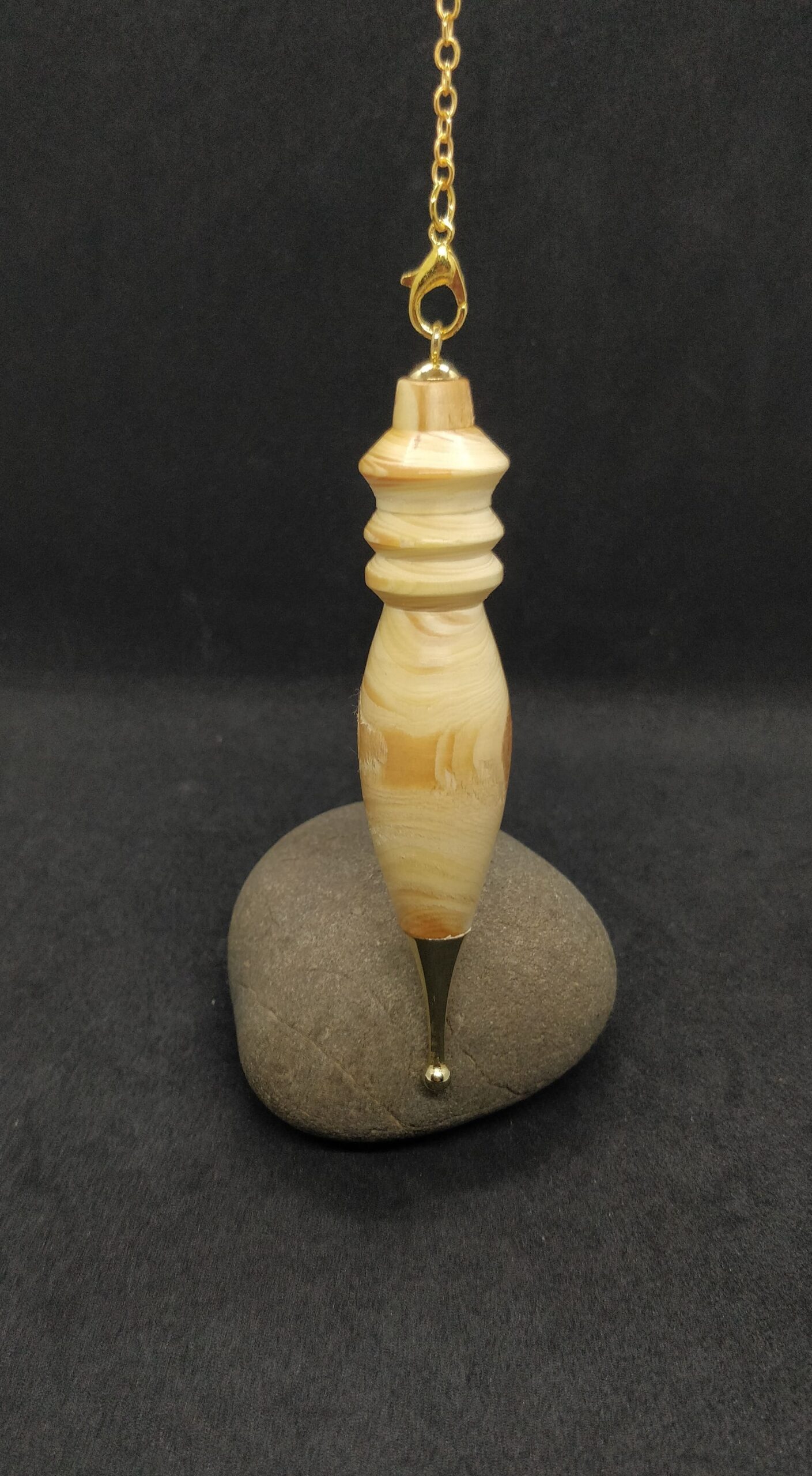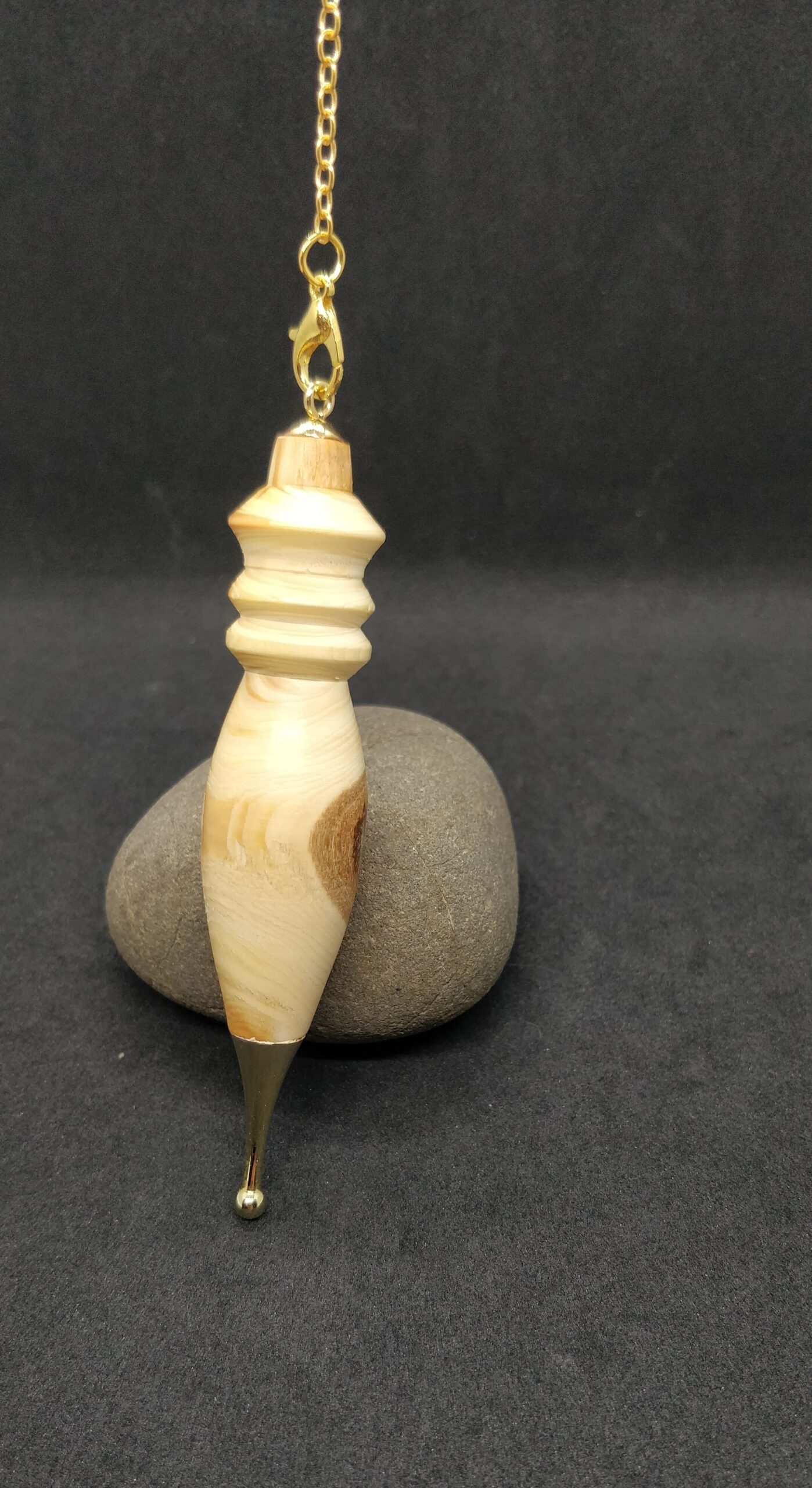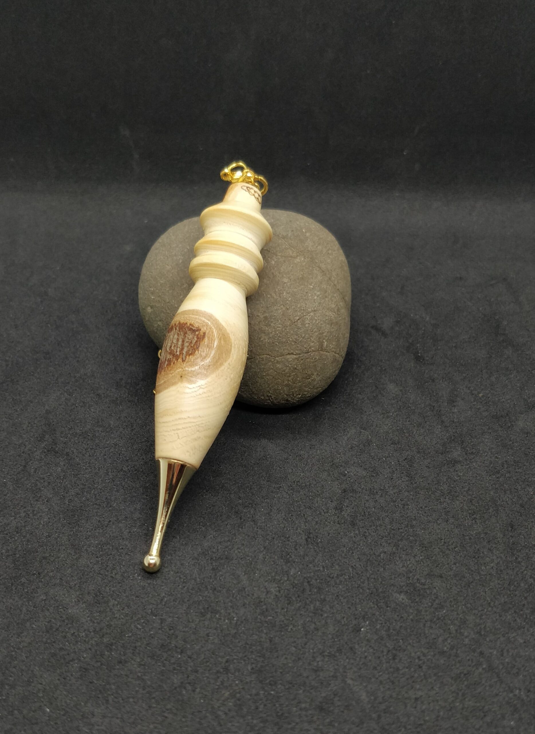 Pendule de radiesthésie en bois d’if et métal doré